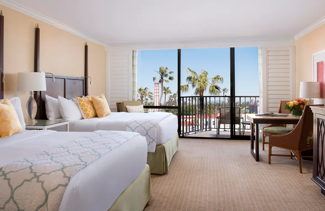 Some of the contemporary rooms of the luxurious Hotel Del Coronado, Curio Collection By Hilton face the patio, and comprise a patio and a balcony. They have a contemporary interior.