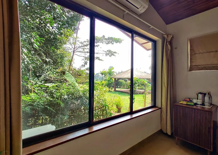 Varuwoods enhances the luxury experience with a perfect blend of comfort and adventure, providing unique accommodations along with activities like trekking and water sports. Facilities cater to relaxation with an outdoor swimming pool alongside cozy seating areas. Guest rooms are equipped with private terraces, presenting landscapes perfect for unwinding. Offering delicious breakfast options, Varuwoods maintains a culinary focus that complements its luxurious service. It stands conveniently close to local attractions, blending luxury travel with adventure.