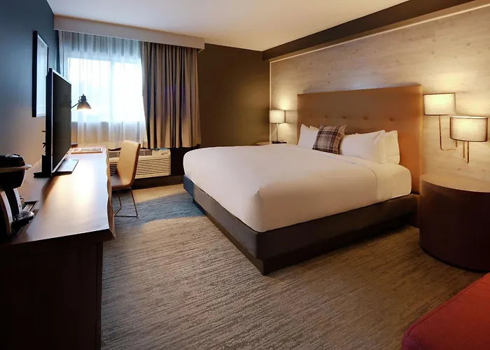 Highline Vail, A Doubletree By Hilton, is centrally located only minutes from Dobson Ice Arena and the skiing zones of Lionshead. The hotel features modern guest rooms with flat-screen TVs and coffee machines, while guests have access to pools and spa services for relaxation. Dining experiences include three on-site restaurants offering a variety of cuisines. Highline Vail also serves as a great starting point for outdoor adventures, including skiing, cycling, and fishing.